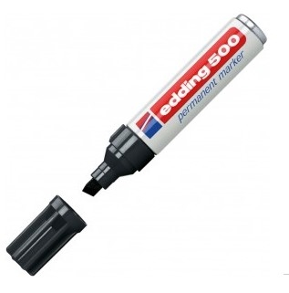 EDDING Permanentmarker 500 mit Keilspitze 2-7 mm schwarzPermanentmarker mit austauschbarer Keilspitze für Papier, Karton, Metall, Kunststoff, Holz und Glas geeignet geruchsneutrale Tinte permanent, schnell trocknend, wisch- und wasserfest und lichtbeständig nachfüllbar mit edding T25 und edding T100 Strichstärke: 2-7 mm schwarz