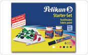 Textilmalen Starter-Setfür helle Gewebe, bügelfixierbar 6 Gläser a´18ml, 1 Textilmalstift, 1 Bügelstift + Info Broschüre